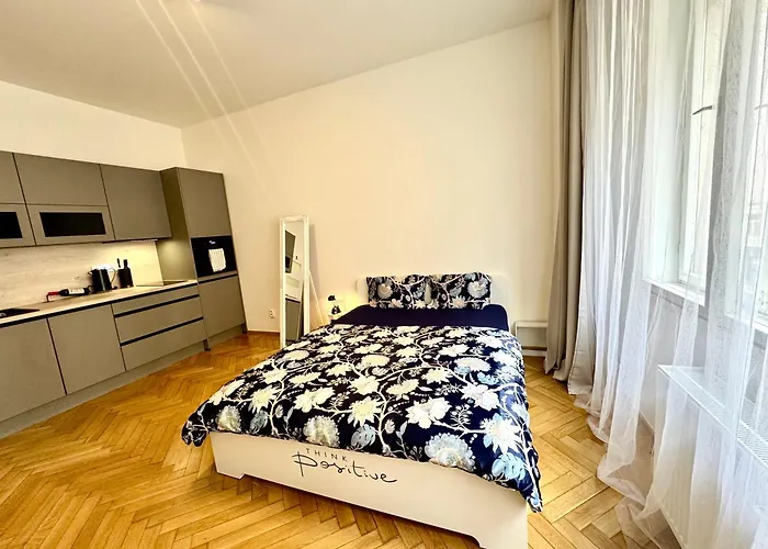 Among the self-catering amenities provided is a full kitchen with a microwave oven, an electric kettle, and kitchenware. European cuisine may also be enjoyed in Estrella restaurant, which is 400 metres away. Offering access to the rest of Prague, Narodni Road underground station is only 5 minutes' walk away. Guests are welcome in a private garden.